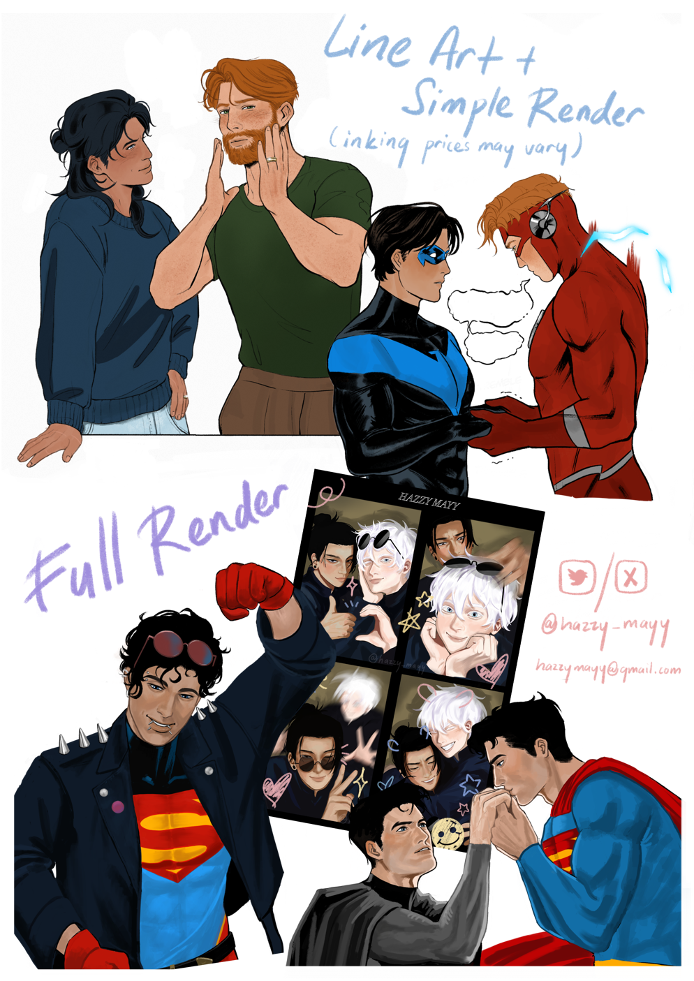 NSFW Pricing will be determined by complexity (Only available in Line Art + Simple Render in Monochrome)These are all base prices, it might vary depending on complexity.1-2 solid color background is free, I don't usually draw backgrounds but simple ones can be discussed, props will be counted as an additional fee.